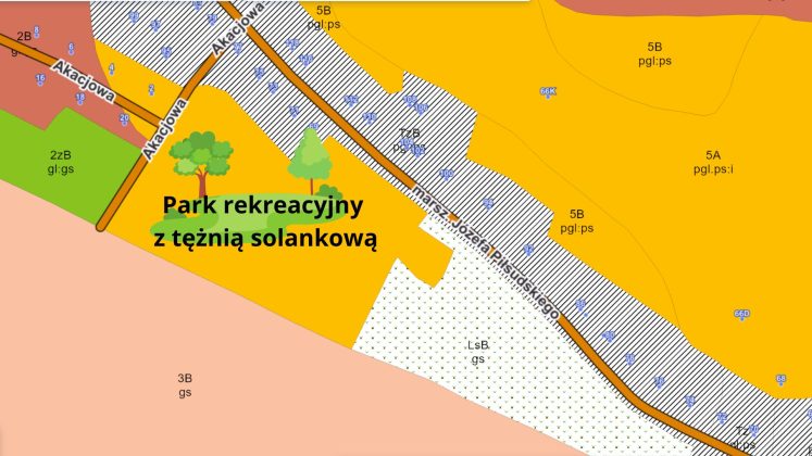 Dojazd do parku będzie możliwy od ulicy Akacjowej. W tej lokalizacji powstaną także miejsca parkingowe, co zapewni wygodny dostęp zarówno pieszym, jak i zmotoryzowanym użytkownikom.